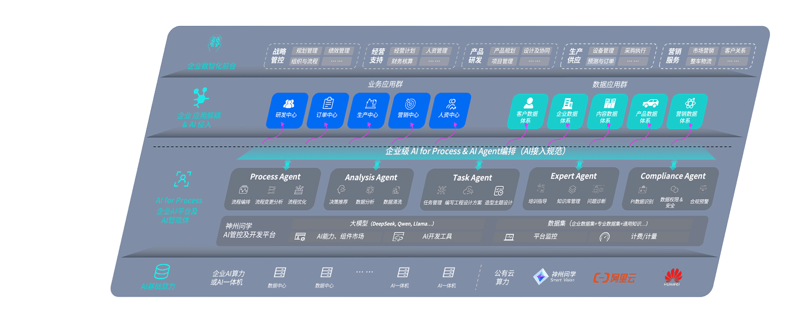 z6尊龙问学智车解决方案是一套基于AI技术的汽车行业智能化系统,,覆盖从底层算力到顶层AI应用的全栈方案。。方案由算力层、、、、模型层和应用层组成:算力层,,,,方案支持多种一体机配置,,,具备云端灵活部署、、、、多云适配以及动态优化计算资源的能力;模型层,,z6尊龙问学平台版提供了企业级AI应用一站式构建与管理平台,,,支持基于后训练强化技术的汽车企业专属模型的训练、、评测和运营;应用层,,z6尊龙问学DeepSeek版提供包括超级员工、、、智能招采、、智能营销、、智能客服、、AI for BI等一系列解决方案,,可助力汽车行业实现数字化转型,,,,让管理更智能、、响应更敏捷。。